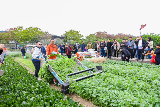 機收蔬菜吸引大量人員駐足觀看。